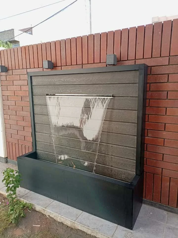 الخيار الأمثل للأحواش ذات المساحات المحدودة. يتم تركيبها على أحد جدران الحوش، وتعتمد على تصميمات عصرية أو كلاسيكية باستخدام تكسيات بديل الحجر أو الخشب، مع دمج الإضاءة الـ LED المقاومة للماء لتبرز جمالها ليلاً.