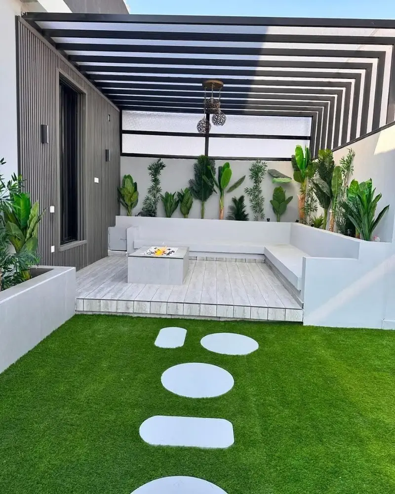 - تصاميم مرنة وعصرية 🎨: يمكن تصميم هذه الجلسات بأشكال هندسية مختلفة (دائرية، مستطيلة، مضلعة)، وتكاملها مع أنظمة الأسطح الأخرى مثل (البرجولات، وتغطيات اللكسان)، لتناسب كافة الأذواق سواء كانت كلاسيكية فاخرة أو مودرن بسيطة.