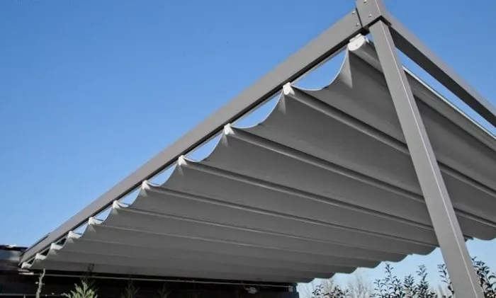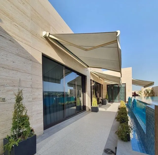 - المرونة المطلقة: تتيح لك التحكم الكامل في مساحة الظل والشمس بضغطة زر (التحكم بالريموت كنترول ⚙️) أو يدويًا، مما يجعلها مثالية للجلسات الخارجية، المسابح، وأماكن الشواء.